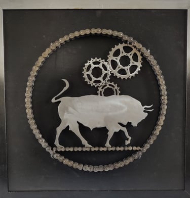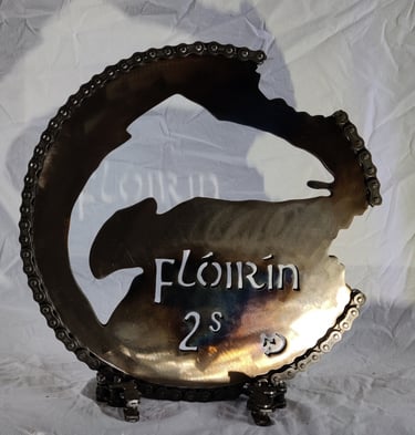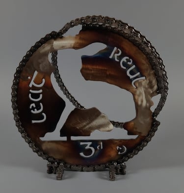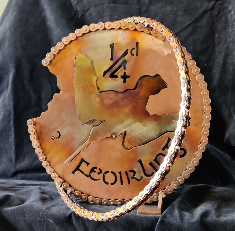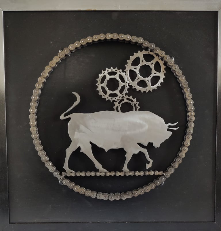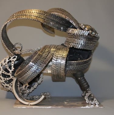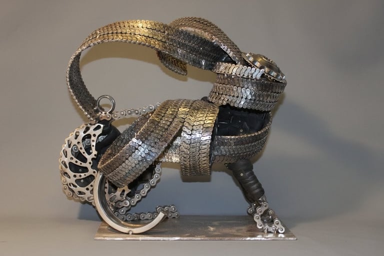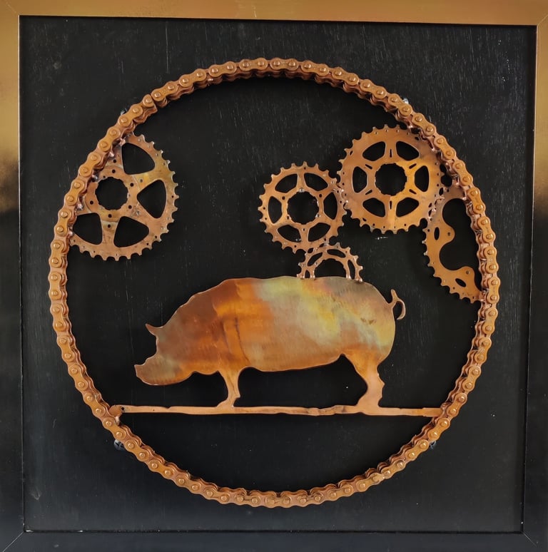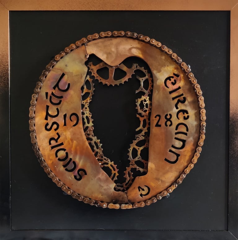 The 'Pingini' exhibition is an evocative exhibition that explores the intersection of Irish numismatic history, wildlife conservation, and sustainable artistry. Featuring a collection of sculptures, the artist breathes new life into the iconic "Pingini" coin series originally designed by Percy Metcalfe in 1928. These artworks were made from old bike cogs, chains & steel.